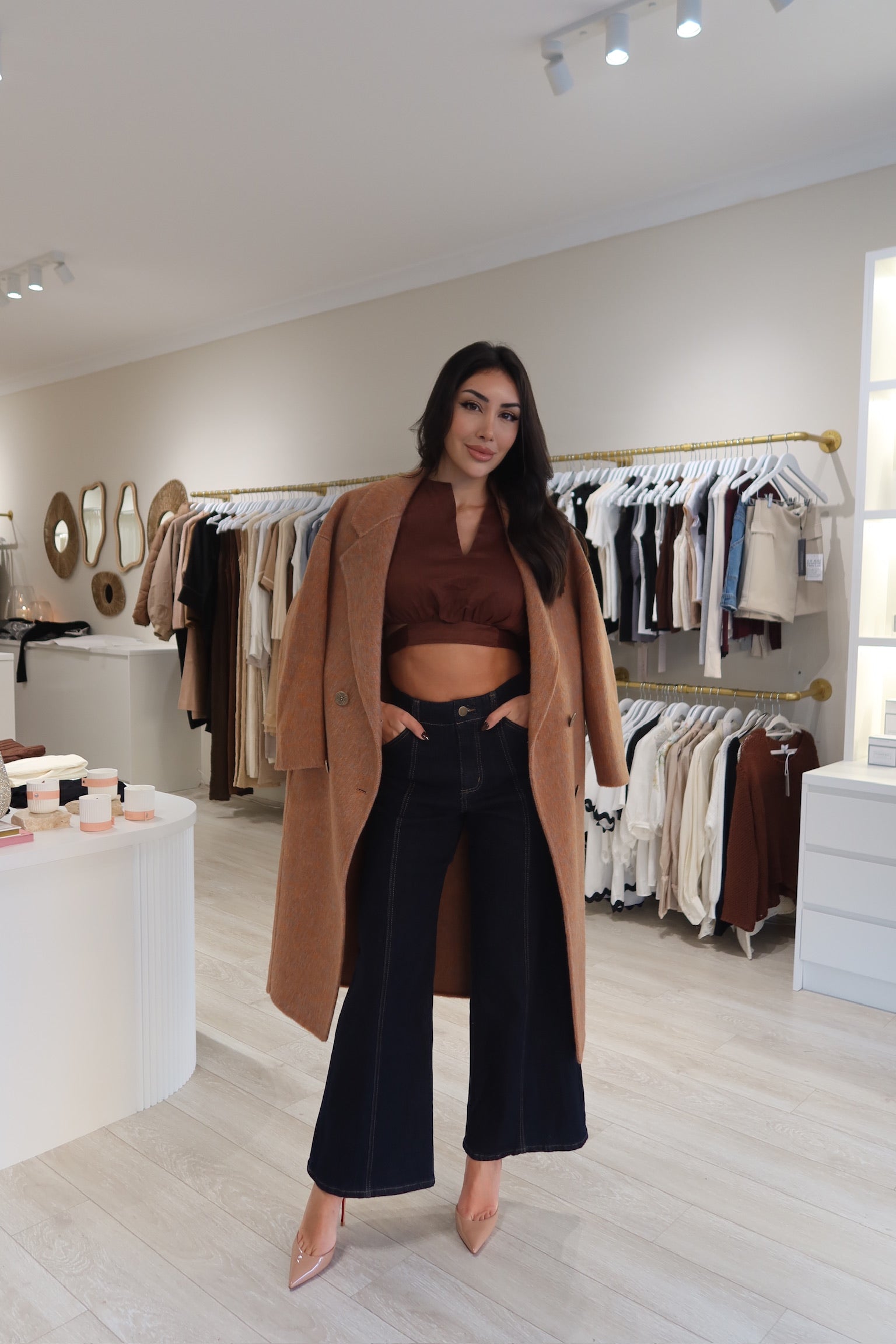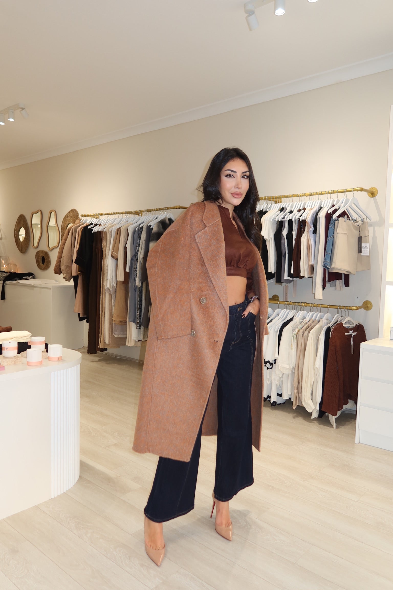 Stay warm and stylish with the Soul Caramel Coat. This coat features front buttons for a secure fit and a warm collar to keep you cozy. Experience the ultimate blend of comfort and fashion with this must-have coat.