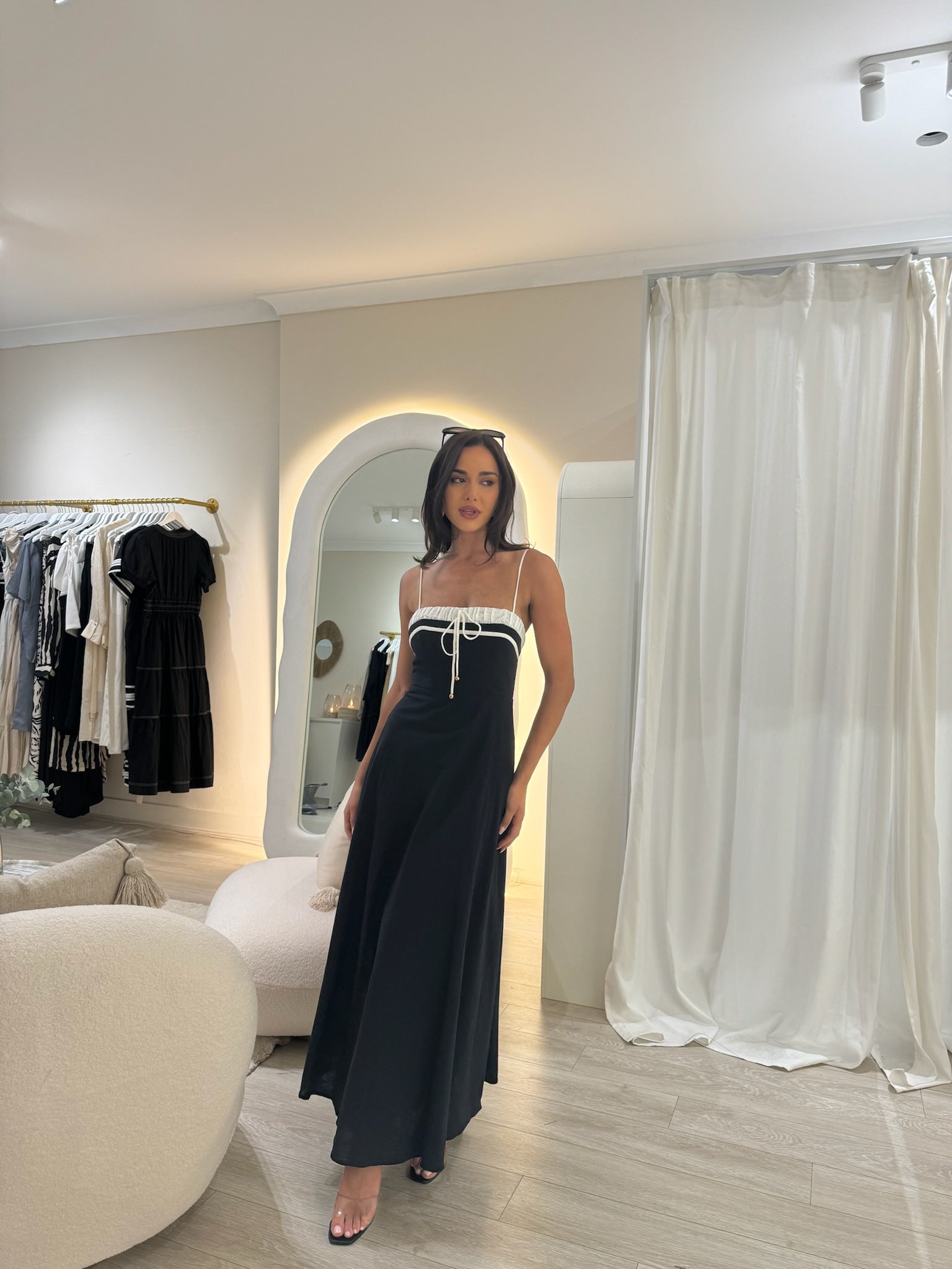 The Mel Contrast A-Line Dress is a must-have item in your wardrobe. With a flattering A-line silhouette and stunning contrast detailing, this dress will make you stand out at any occasion. Made with high-quality materials, it offers both style and comfort. Upgrade your wardrobe with this piece.