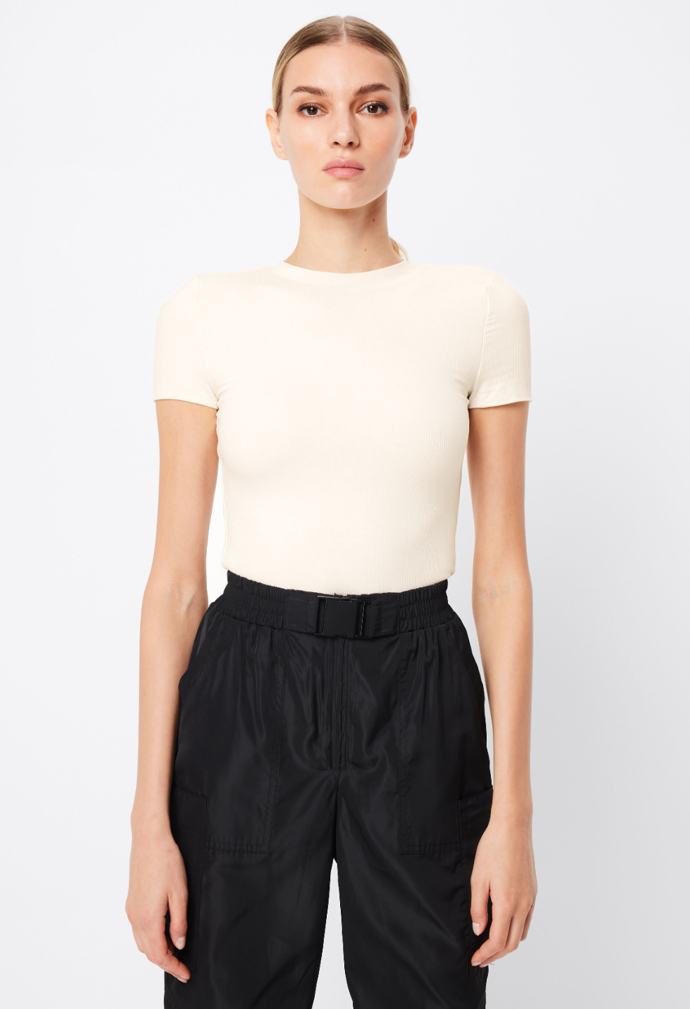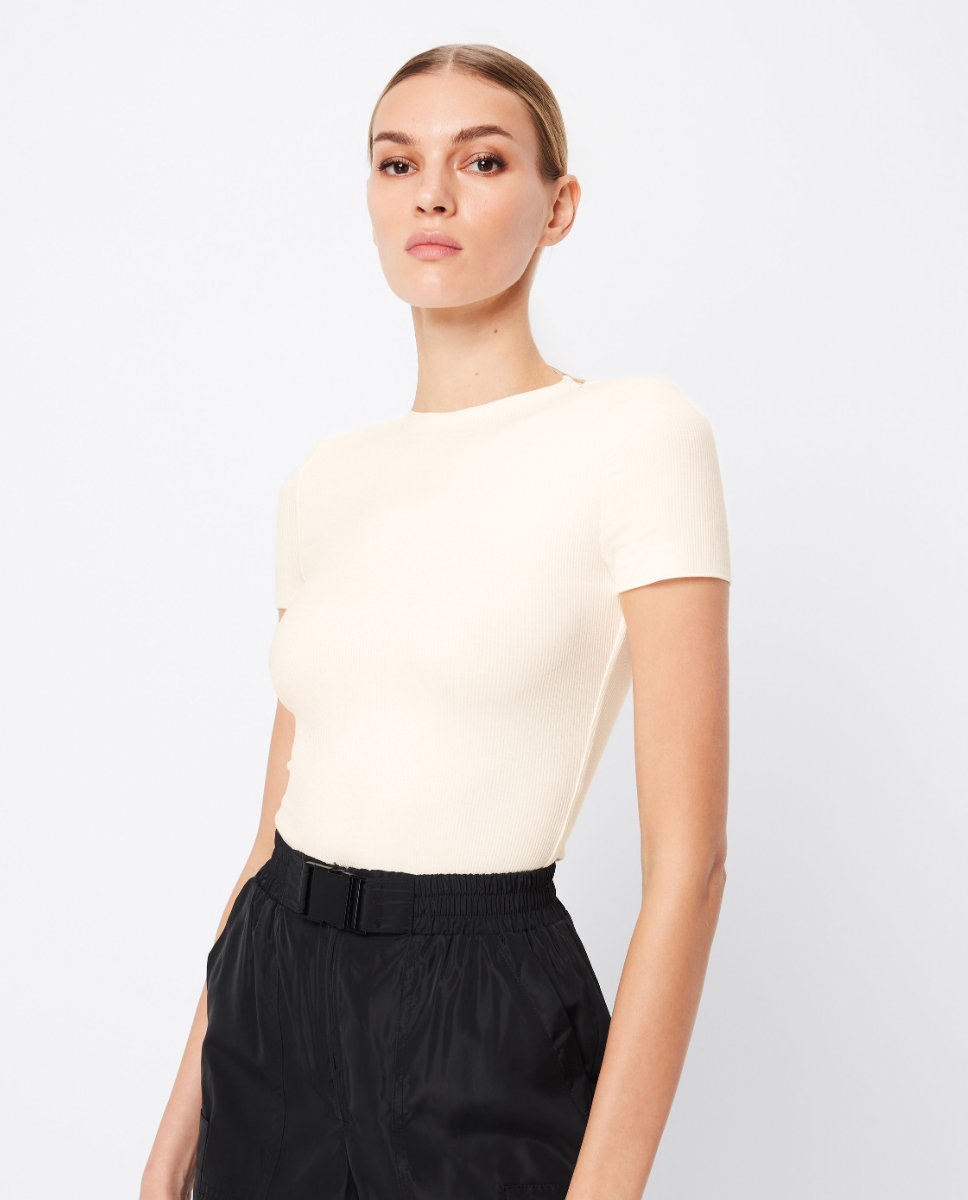 The Bowery Top exudes comfort and versatility. The top sports a soft and lightweight fabrication, round neckline and short sleeves. Designed to be worn on its own or as a layering piece, this top will soon become a wardrobe staple.