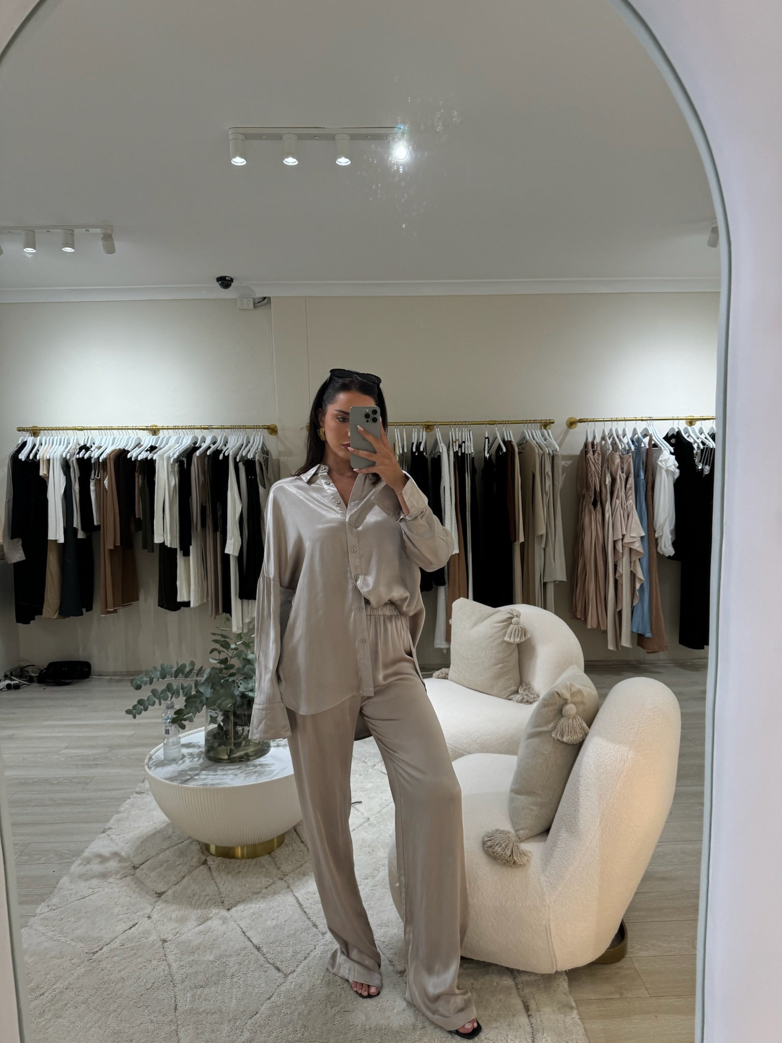 Milan Satin Shirt - Mushroom