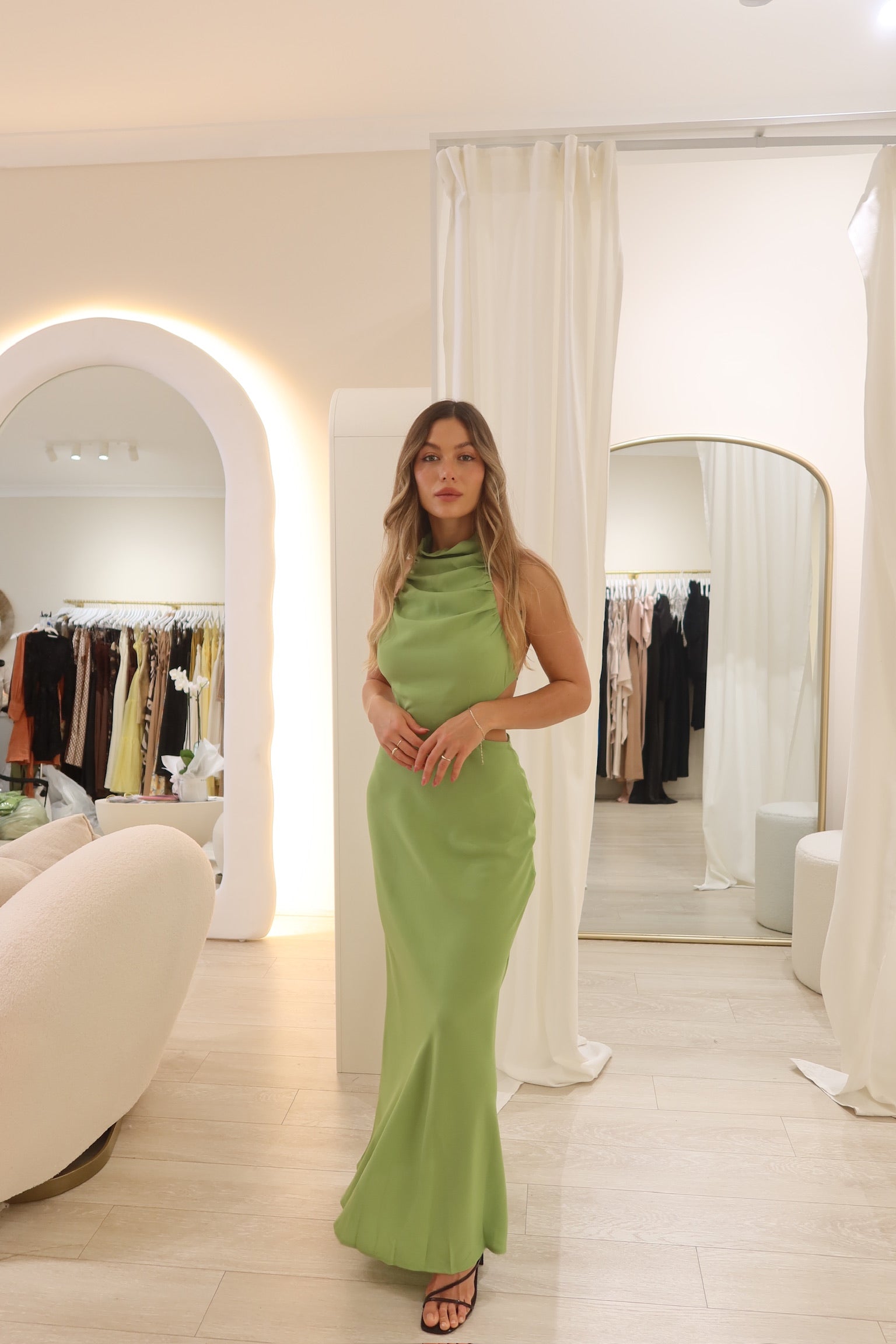 Marie Backless Midi Dress - Lime
