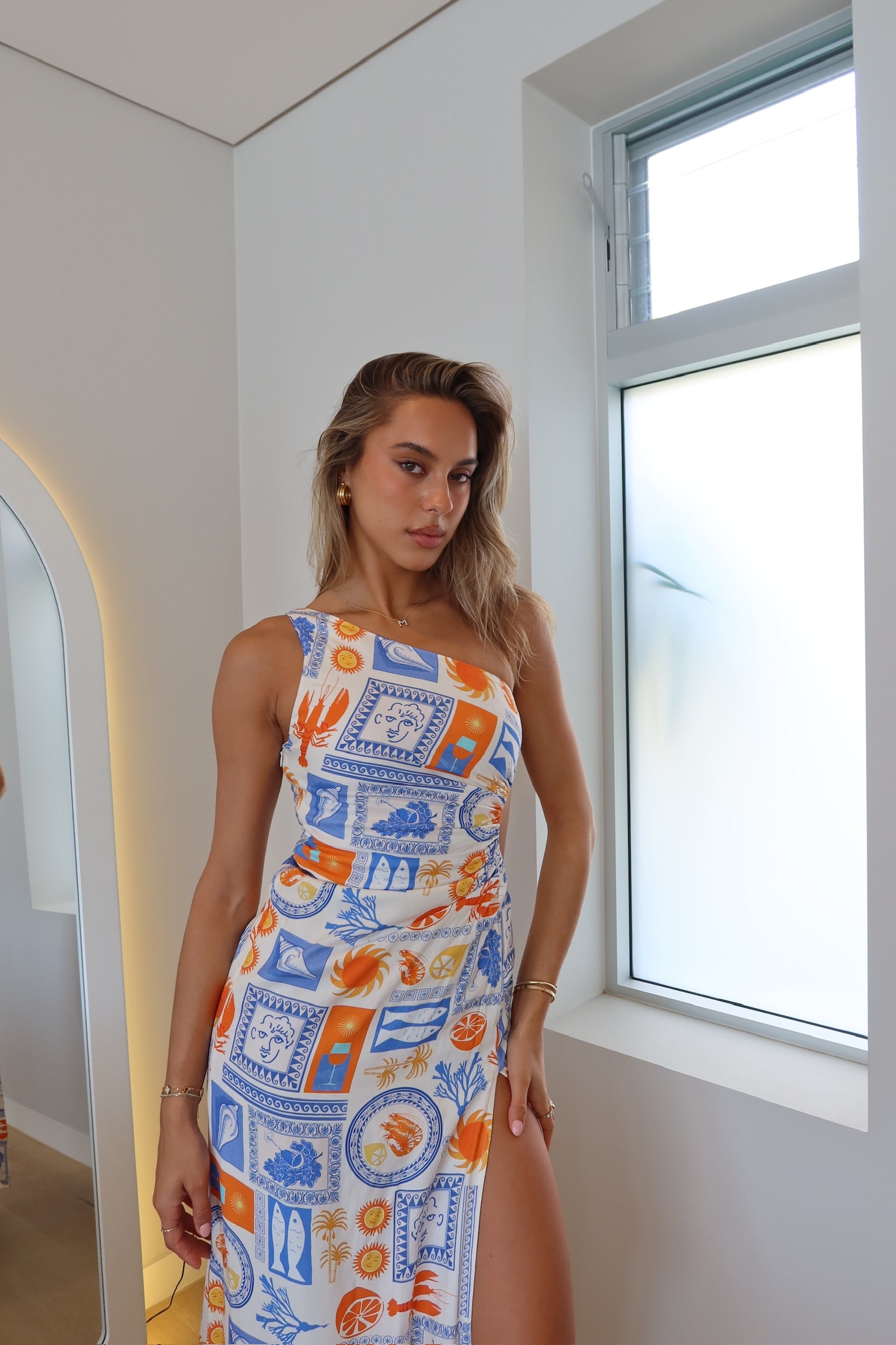 Our Ascend Maxi Dress features an elegant silhouette with a high leg split and cut out at the side of the waist, perfect for your next summer wedding.