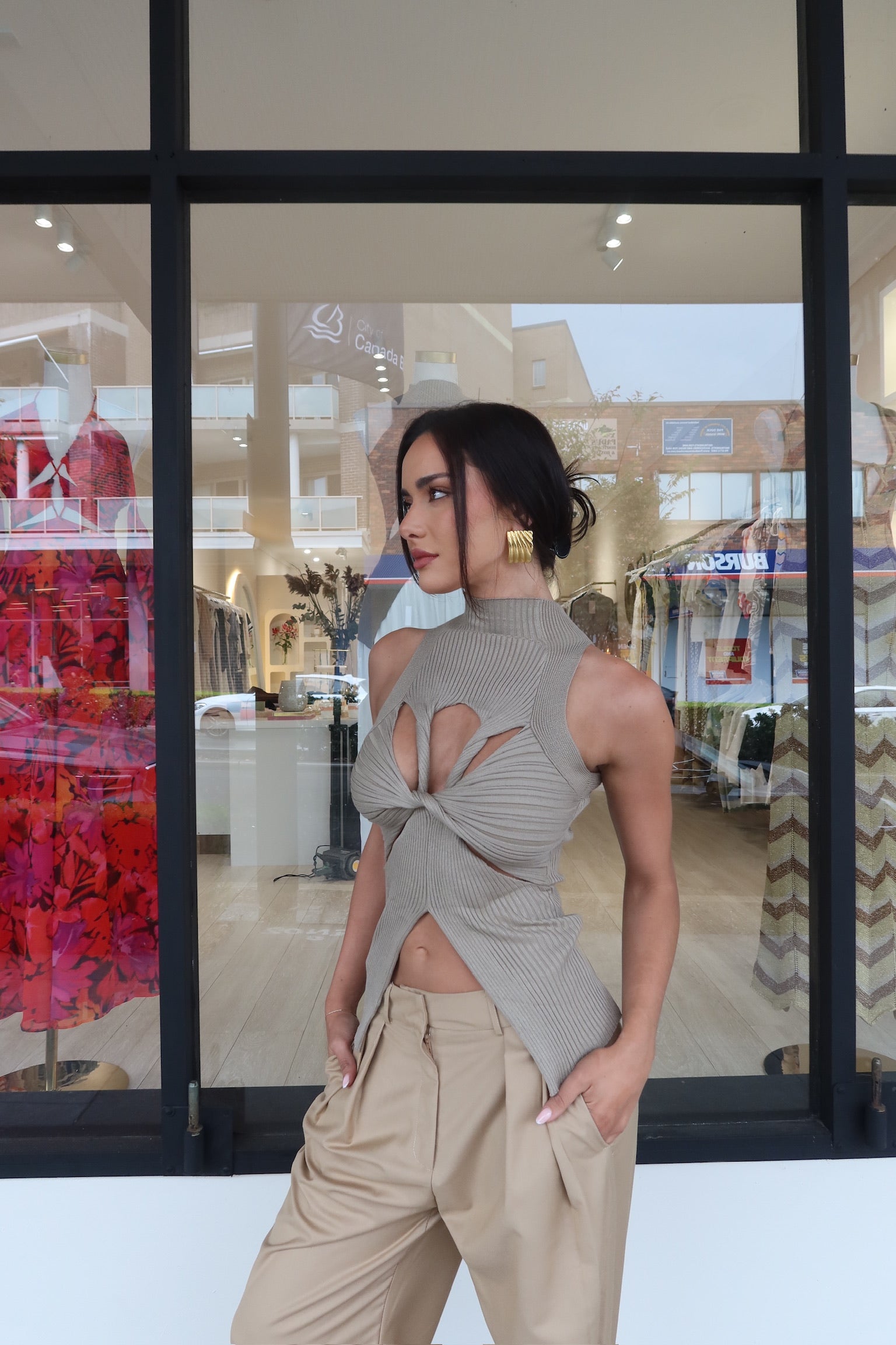 Introducing the DALLA TOP, featuring a unique front cross over design in a comfortable knit material, offering both style and comfort. This top is perfect for any occasion, making it a versatile addition to your wardrobe. Upgrade your look with this one-of-a-kind top.