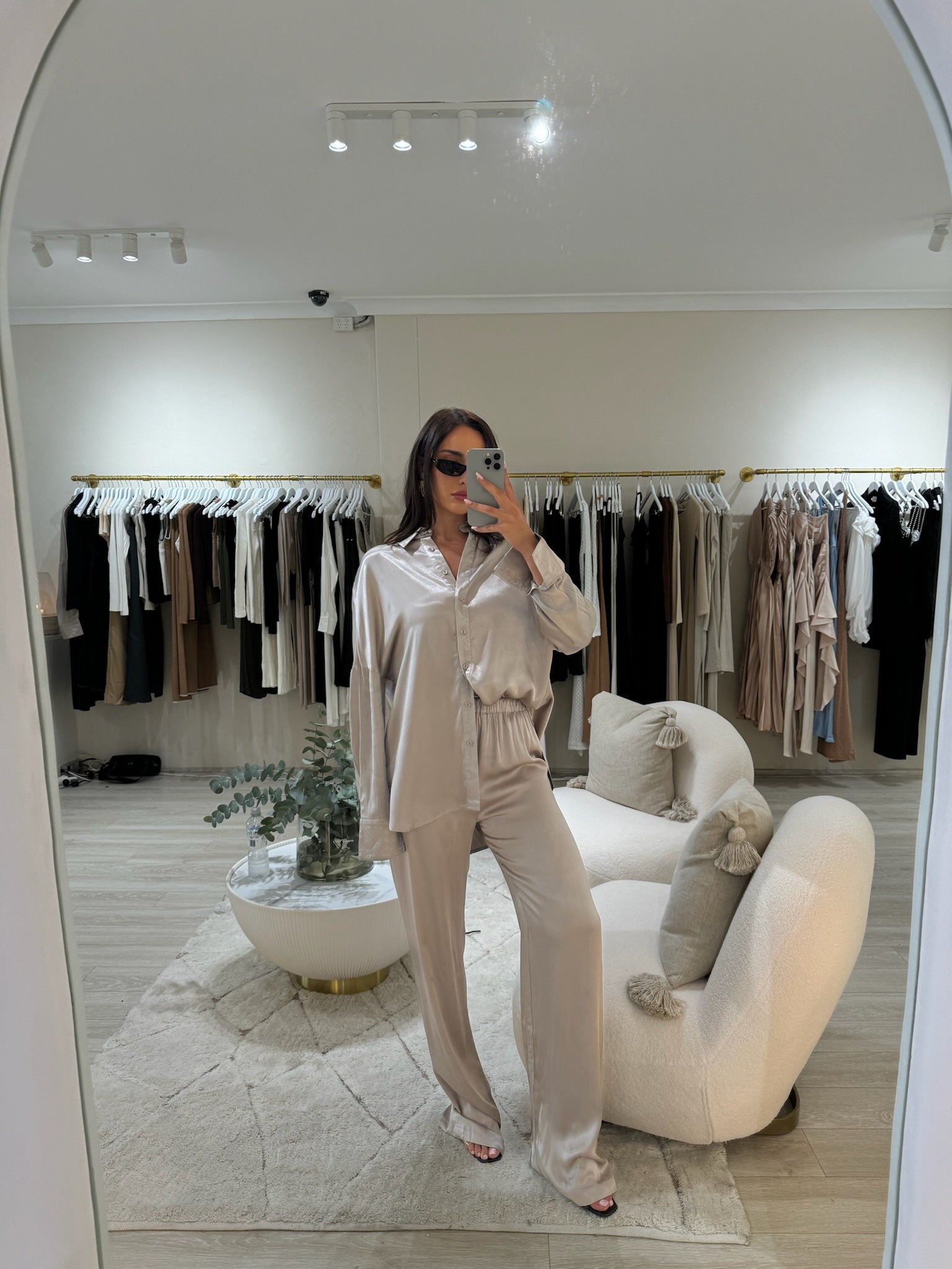 Milan Satin Shirt - Mushroom