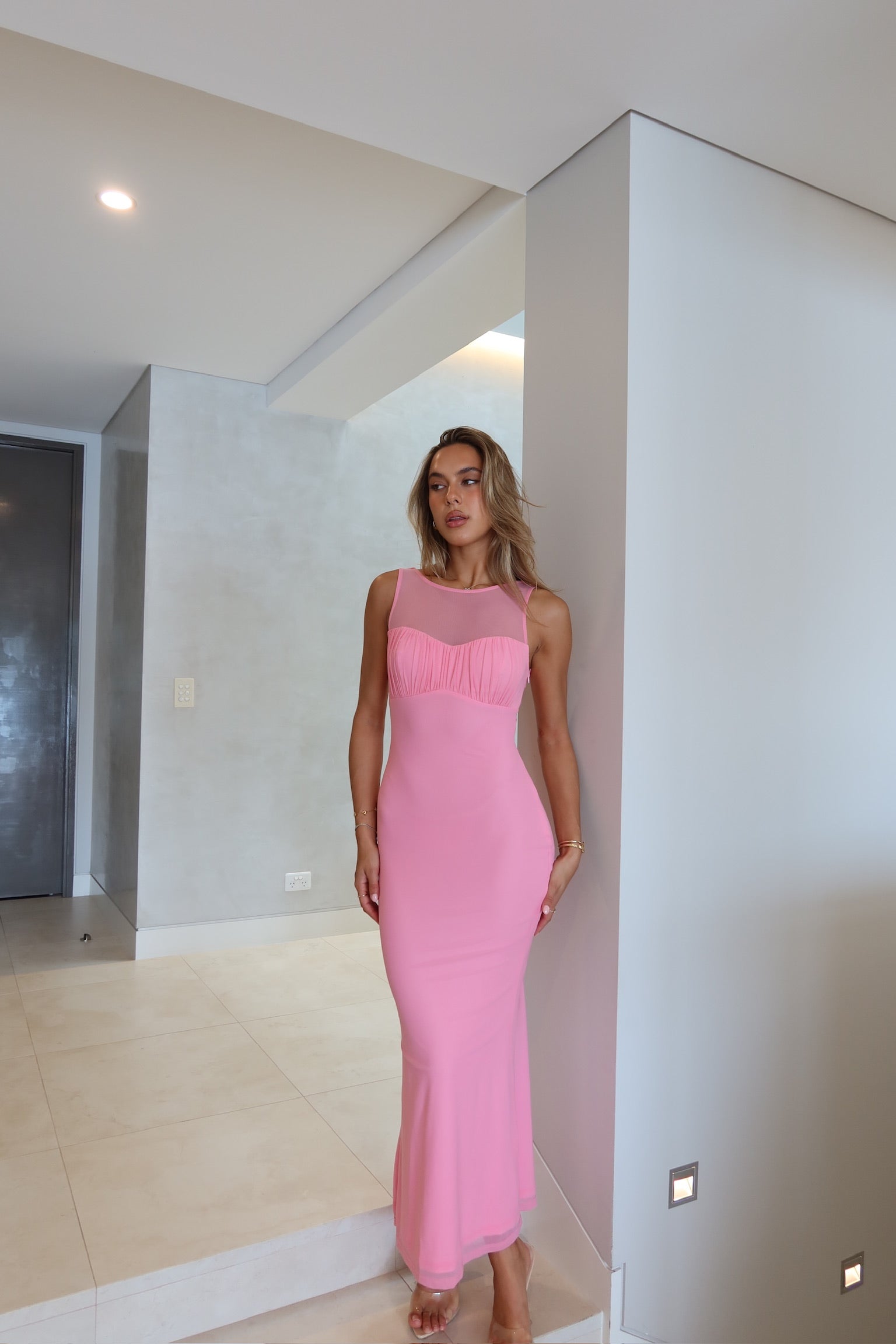 Enhance your femininity with our Capri Pink Maxi Dress. This dress features a unique corset bra and a mesh neckline, accentuating your curves and highlighting your style. The maxi length add a touch of elegance and grace to your wardrobe. Elevate your wardrobe with this stunning dress.